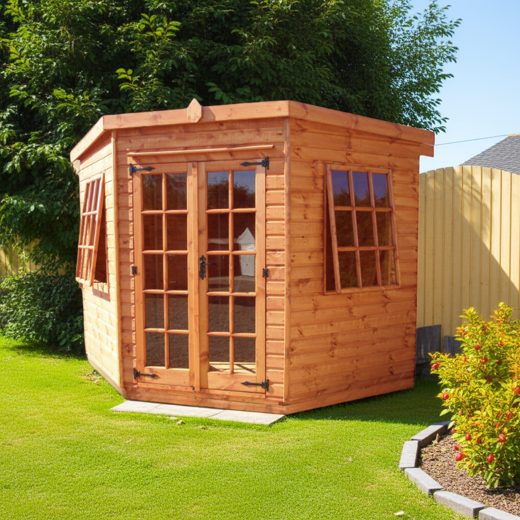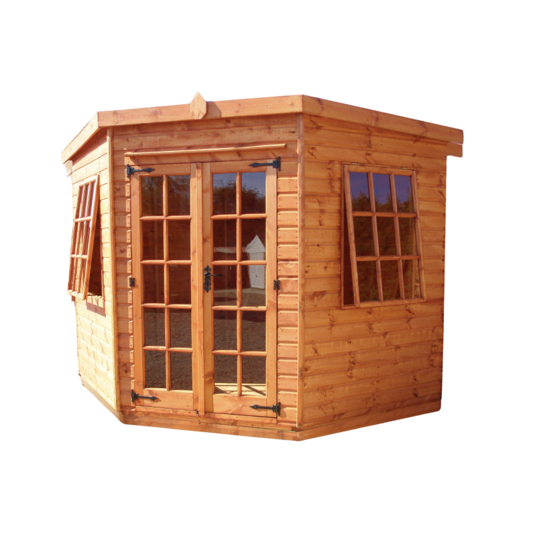 Step into traditional elegance with the Corner Georgian Summerhouse by TGB. Inspired by classic British architecture, its balanced proportions and refined detailing evoke a timeless charm. Perfect for relaxed gatherings or as a charming storage solution, it exudes period sophistication.