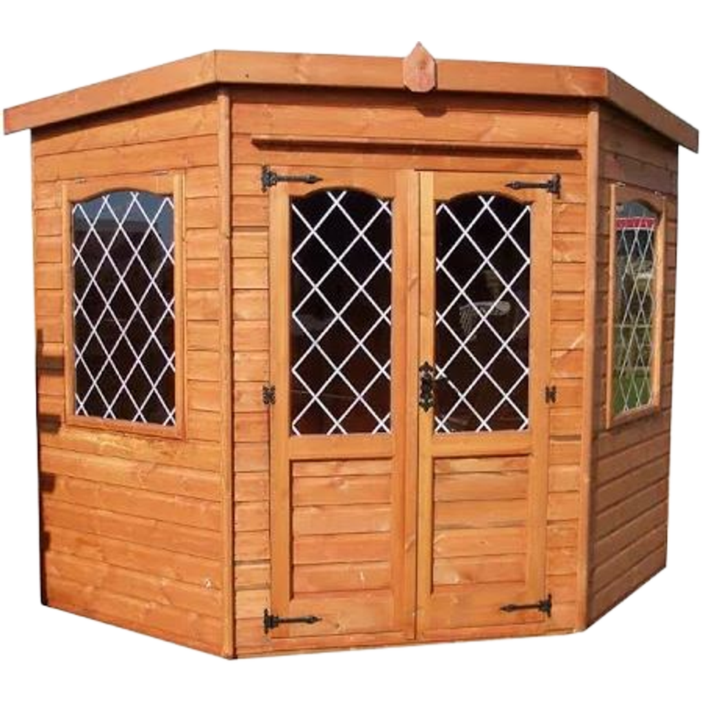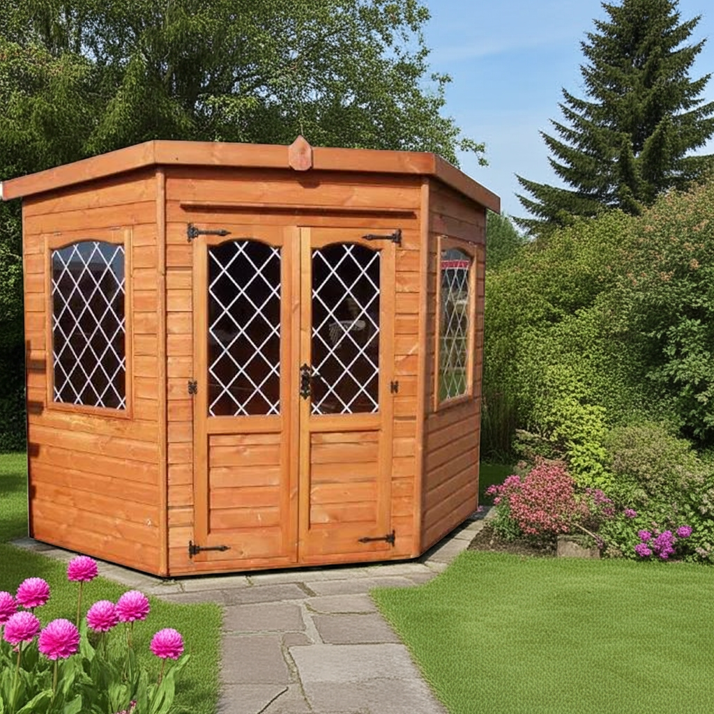 Enhance your outdoor space with the Corner Leaded Summerhouse from TGB. Accented by elegant leaded glass and positioned to maximize natural angles, this summerhouse combines detailed artistry with modern function. It delivers a smart and sophisticated addition to any garden.