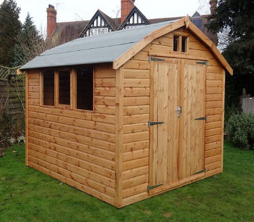 Discover the elegant design of the Dutch Barn Delux by A&J. This sophisticated garden building blends timeless Dutch barn charm with deluxe features that enhance comfort and resilience. Perfect for storing equipment, creating a cozy studio, or hosting garden gatherings, it stands out with intricate craftsmanship and refined countryside allure.