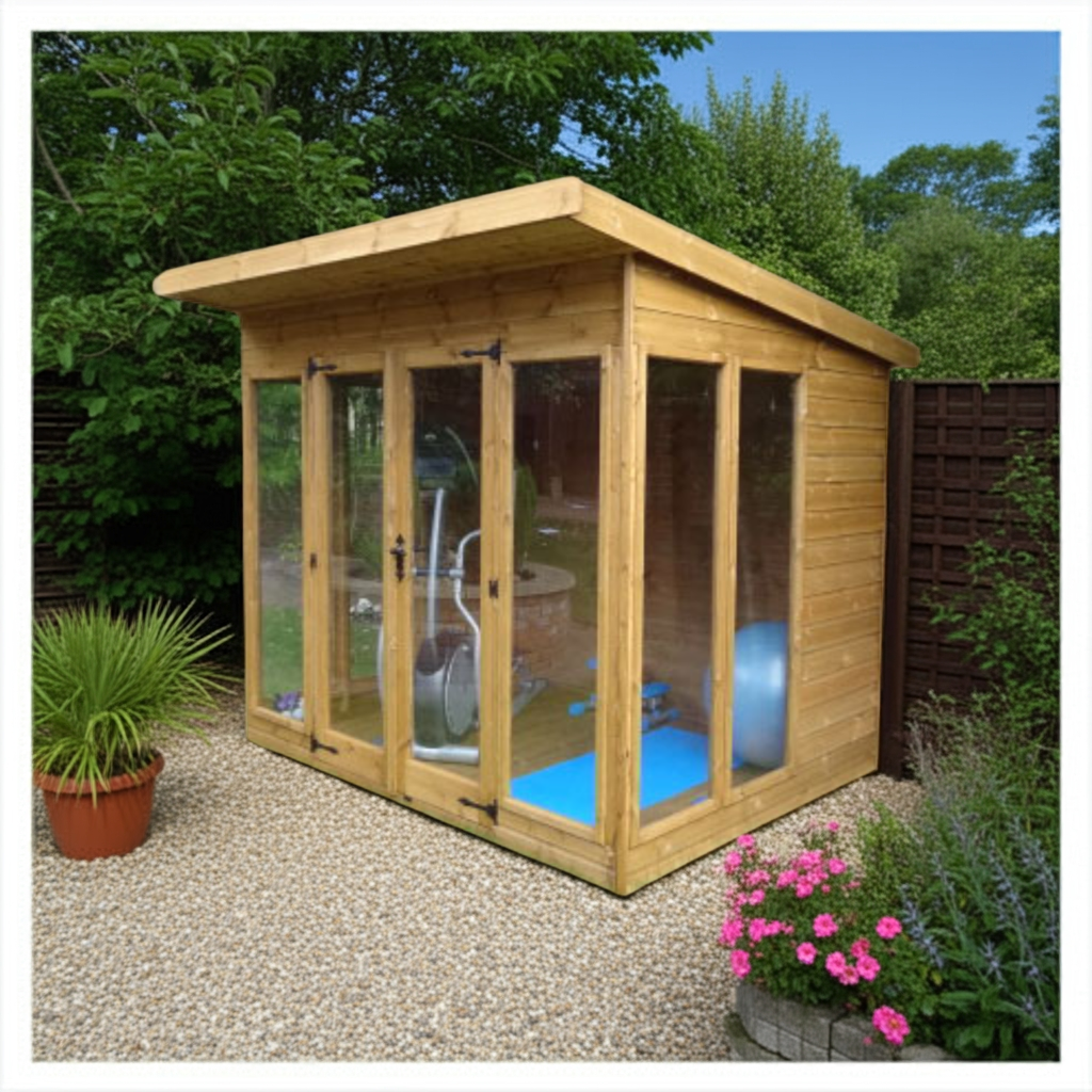 Brighten your outdoor living with the Sunningdale Summerhouse by TGB. Bathed in natural sunlight, its expansive windows and airy interior craft an inviting space perfect for relaxation or entertaining. Its sturdy design and refined aesthetics ensure enduring summer pleasures.