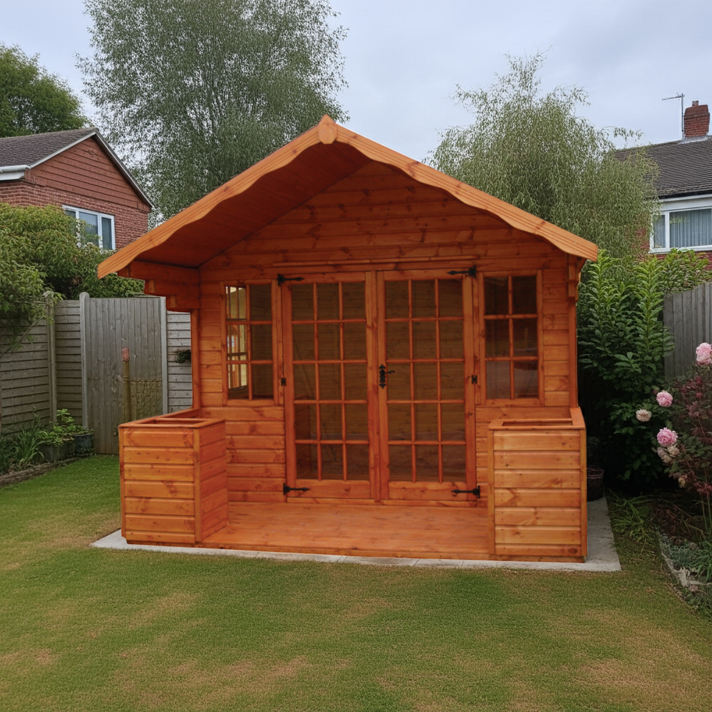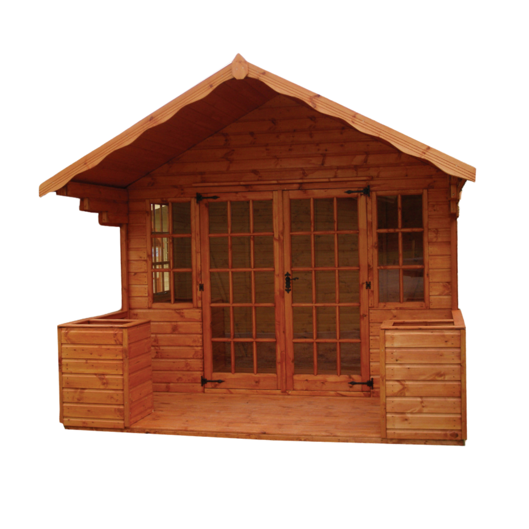 Indulge in expansive outdoor comfort with The Wentworth, featuring an integrated 4-foot veranda by TGB. Designed to merge indoor refinement with garden breezes, this building provides generous space for social gatherings or quiet moments in a graceful setting.